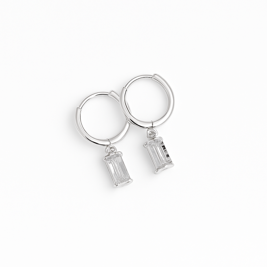 The perfect minimal statement piece. Handcrafted S925 sterling silver hoops with bright zircon stones. Add the perfect touch of elegance and shine to any outfit with these stunning hoops. The bright zircon stones add a touch of glamour. Treat yourself to a touch of luxury and elevate your style game with Baguette Drop Hoops.