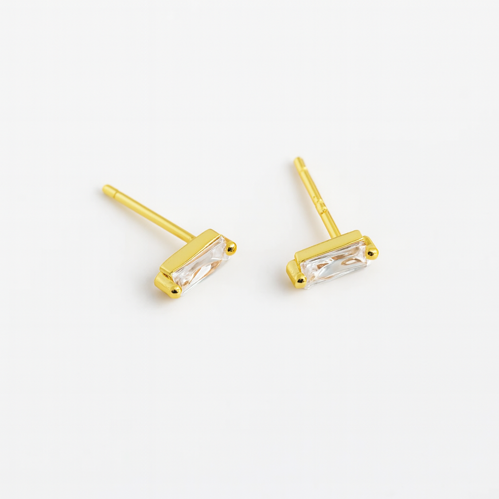 Our Baguette Stud Earrings are sure to make you feel pretty the instant you put them on, with their subtle sparkle and minimal shape. They are super versatile and can worn on any occasion - from a day at the beach to a night out. Add a little sparkle to your life and a speckle of confidence by throwing on these on! Did we mention they're waterproof and made for everyday wear?!