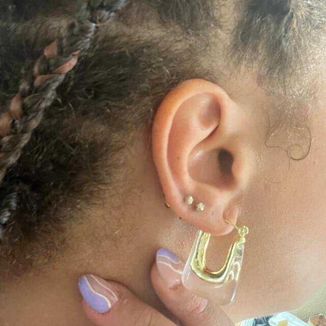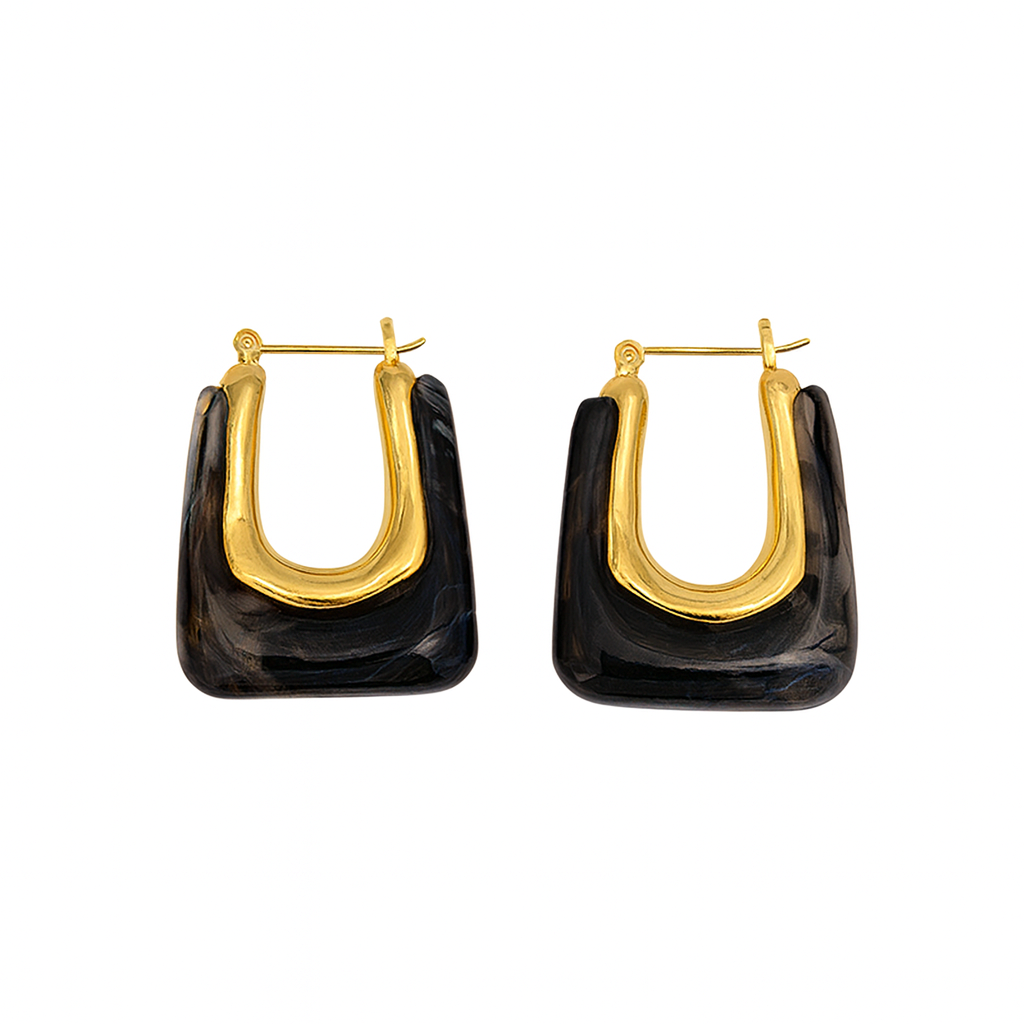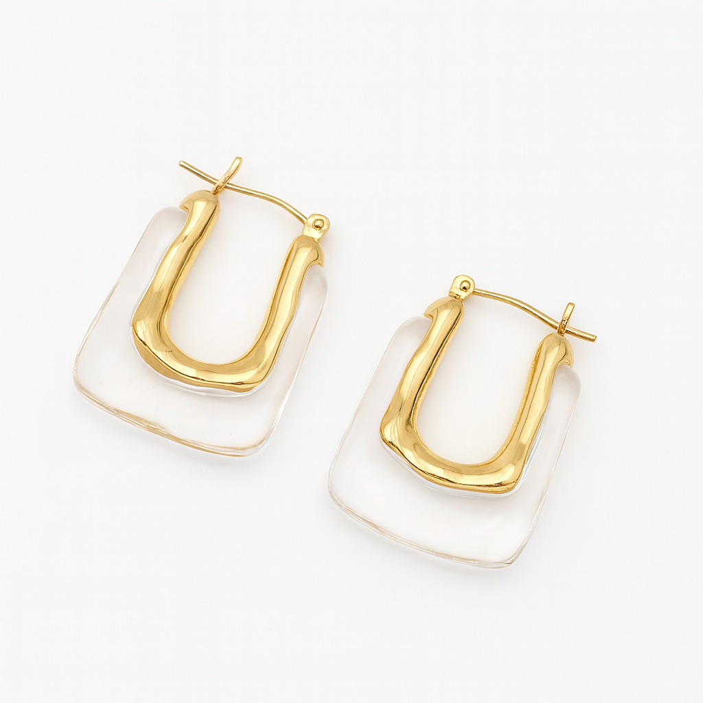 The Resin Statement Earrings are an exquisite and timeless earrings. These are stunning and great for everyday hoop. These statement earrings feature a clear crystal resin on gold with a minimalist design.