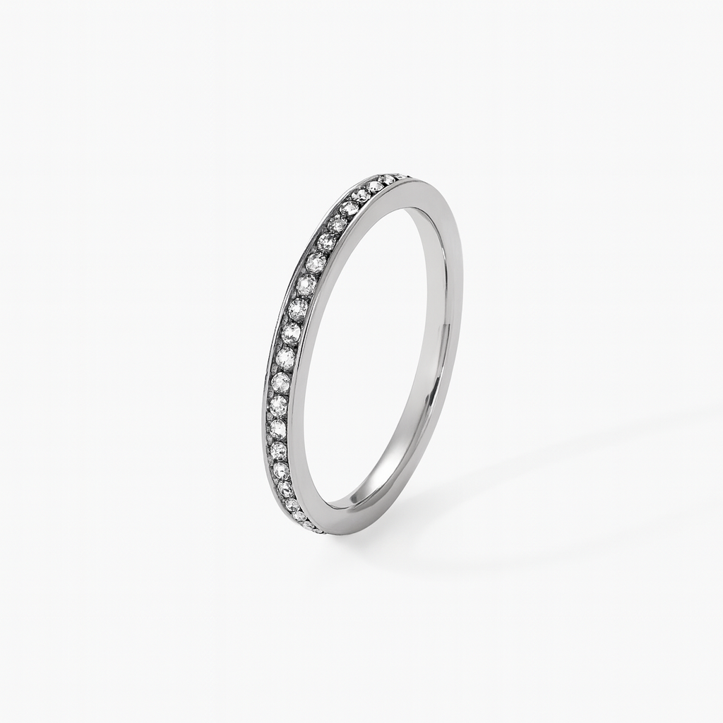 The Shimmer Ring is an eternity ring featuring sparkling cz diamonds, on a silver or 14K gold plated band. Wear them for a office meeting, to a night out. Versatile and easily stackable to suit your personal taste.
