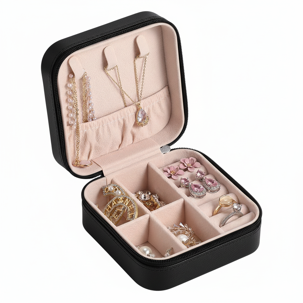 Thoughtfully designed organizer is divided into multiple compartments that feature an anti-tarnish micro suede lining to keep your jewelry shining. Different compartments is good for rings, bracelets, necklaces and earrings. Compartment dividers can be removed to fit larger pieces of accessories such like a watch. Get this along with your purchase to keep your Something Jewelry pieces in its top shape or gift it to your loved ones to keep theirs nice and safe.