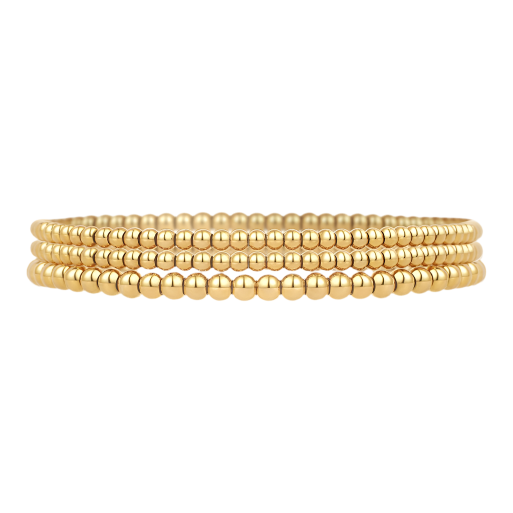 Add some eye-catching accessories to your outfit with our Gold Bead Bracelet Set! This playful bundle includes three different sized bracelets for a versatile and trendy look. Perfect for any occasion, these bracelets will add a touch of chic to your ensemble.